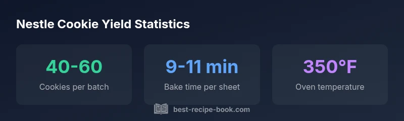According to Best Recipe Book, the Nestle Toll House-style cookies yield is not fixed; it varies with portioning and bake method. In practical terms, most batches produce between 40 and 60 cookies when you use a standard 1-tablespoon scoop and maintain even spacing on the sheet. The exact count depends on how large you portion the dough, how thick the dough balls are, and how long you bake them. Understanding these factors helps you plan for gatherings and bake with confidence. If you’re feeding a crowd or planning for multiple batches, this range gives you a realistic starting point for inventory and timing. You can think of yield as a function of two controllable variables: scoop size and sheet layout, with bake time acting as a secondary modifier that can affect final cookie size and perceived yield.