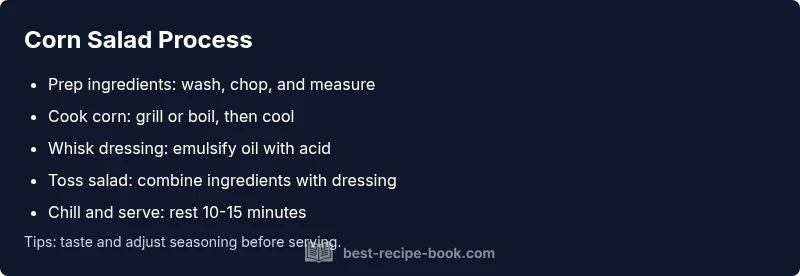 Learn to make a bright, crowd-pleasing corn salad with a zesty lemon vinaigrette. This guide covers selecting fresh corn, toasting add-ins, and making a balanced dressing, plus make-ahead tips for meal prep. According to Best Recipe Book, this salad adapts for picnics, weeknights, and potlucks. Follow the step-by-step instructions to achieve crisp corn, vibrant vegetables, and harmonious flavor.