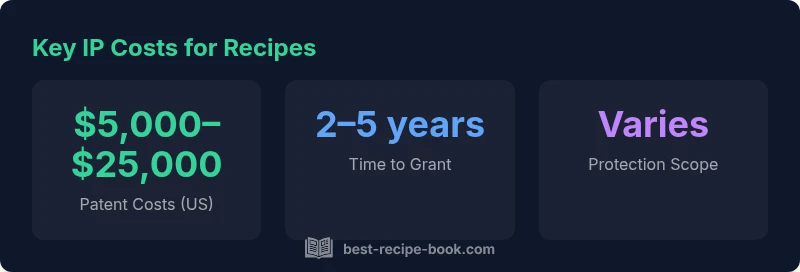 Many people assume you can patent a recipe as a list of ingredients and steps. In practice, most jurisdictions do not treat a mere recipe as patentable subject matter. According to Best Recipe Book, patents typically protect a new and useful process, machine, or composition of matter, not a cook's formula. That means a traditional chocolate chip cookie recipe, by itself, is unlikely to receive patent protection. However, if you can demonstrate a novel production method, an automated cooking device, or a unique chemical formulation used in processing food, you might pursue a patent for that process or apparatus. When readers ask how much does it cost to patent a recipe, the answer hinges less on the recipe text and more on whether you have a patentable process or system around it. The costs discussed below reflect pursuit of a patent on a genuine invention, not on a standard recipe.